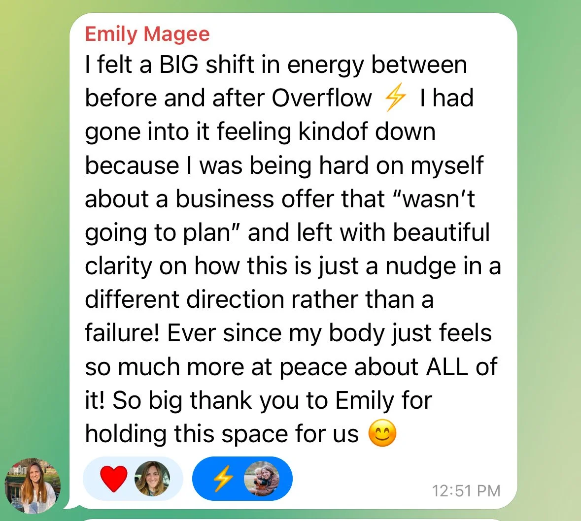 As a former beloved client shared, “Emily is the perfect blend of strategic planning, embodied guidance, and woo-woo magic”