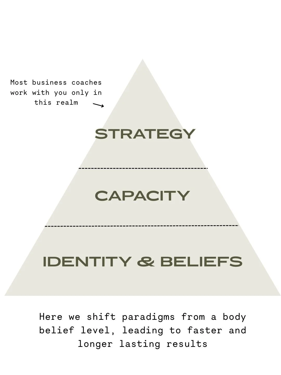 In all of our coaching spaces, we address all three levels of transformation, starting with our embodied beliefs, so that you get faster, longer lasting results.